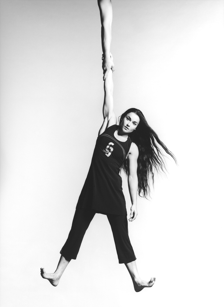 Série de mode exposée dans les vitrines du Printemps Bd Haussmann avec des acrobates et des sportives de haut niveau